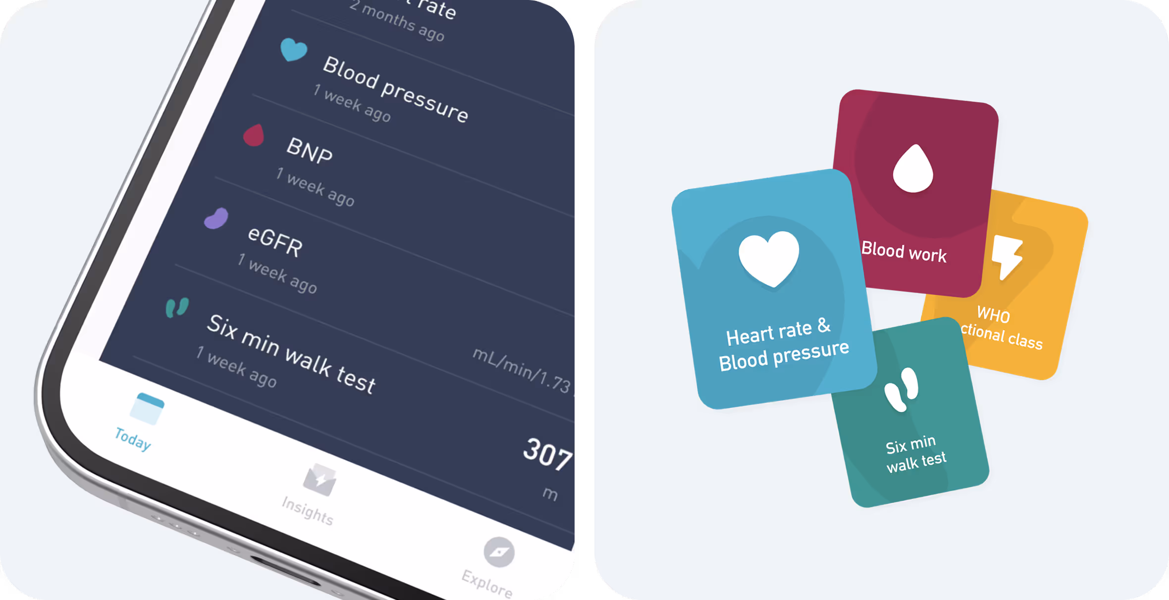 The app needed to track 4 metrics at separate intervals, each with different techniques. These included blood pressure, 6-minute walk test, blood work, and the WHO functional class to calculate a score. Since they needed to fit into an everyday schedule the key design criteria was an efficient flow that was easy to use.