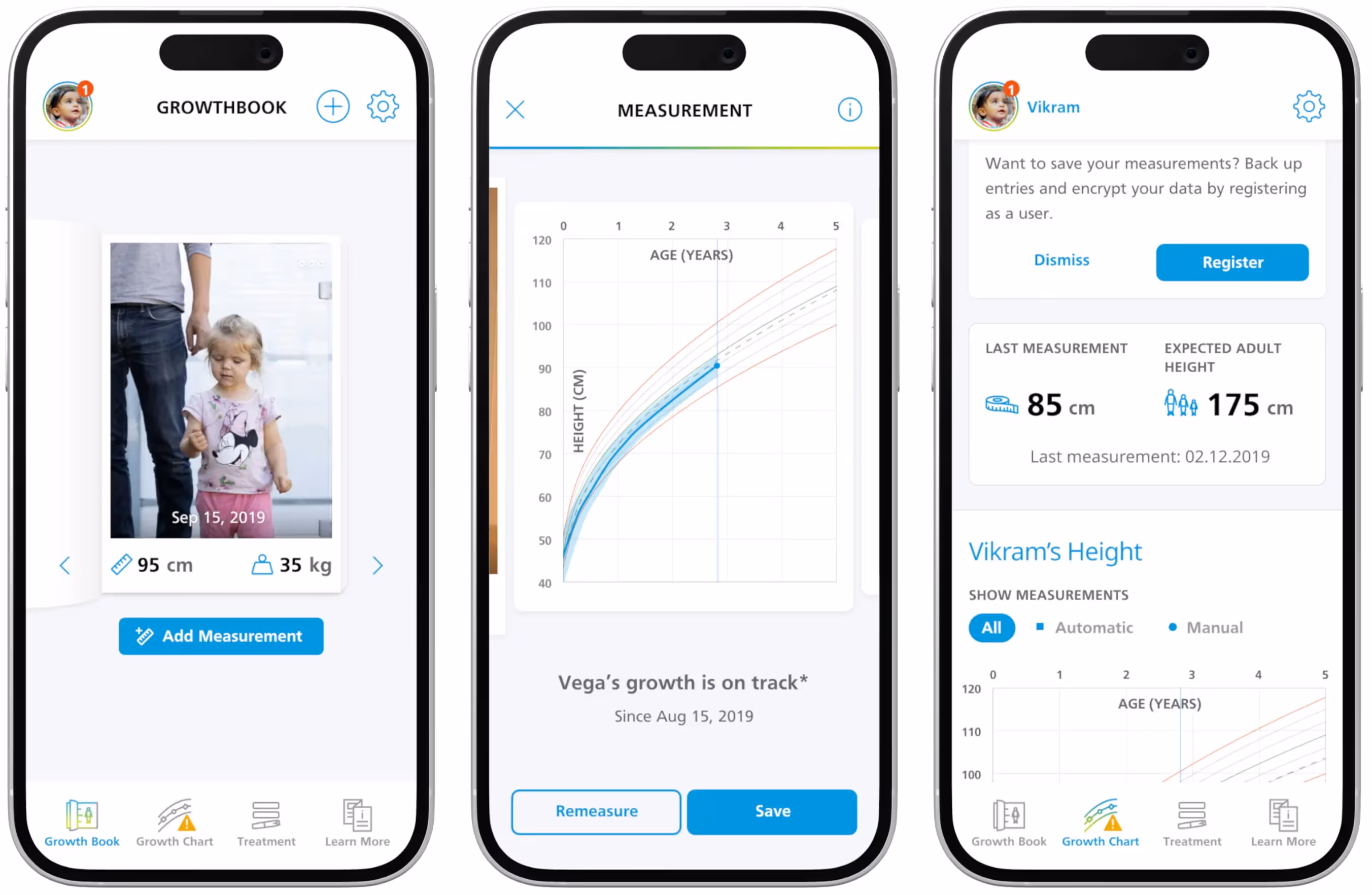 By utilizing the smartphone camera and image recognition software, Growth Journey supports parents in helping to track a child’s measurements and growth over time. This can help to indicate for Growth Hormone Deficiency at an early stage.